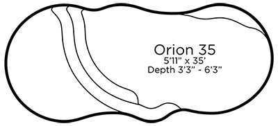 A sleek and contemporary pool model that redefines luxury outdoor living. With its distinctive curved design and integrated tanning ledge, the Orion 35 offers a sophisticated and inviting space for relaxation and recreation.