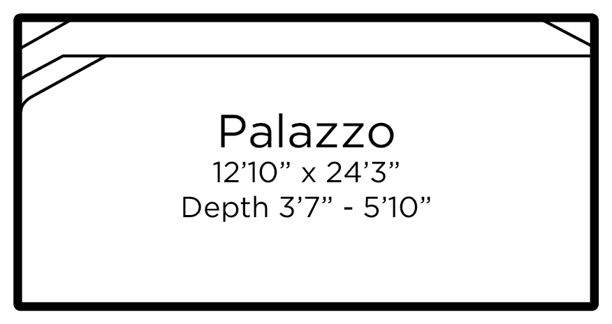 The Palazzo features a contemporary geometric design that will suit any outdoor area, extended bench seating along one side of the pool, perfect for adding spa jets, and an uninterrupted swimming area with plenty of room for the whole family.